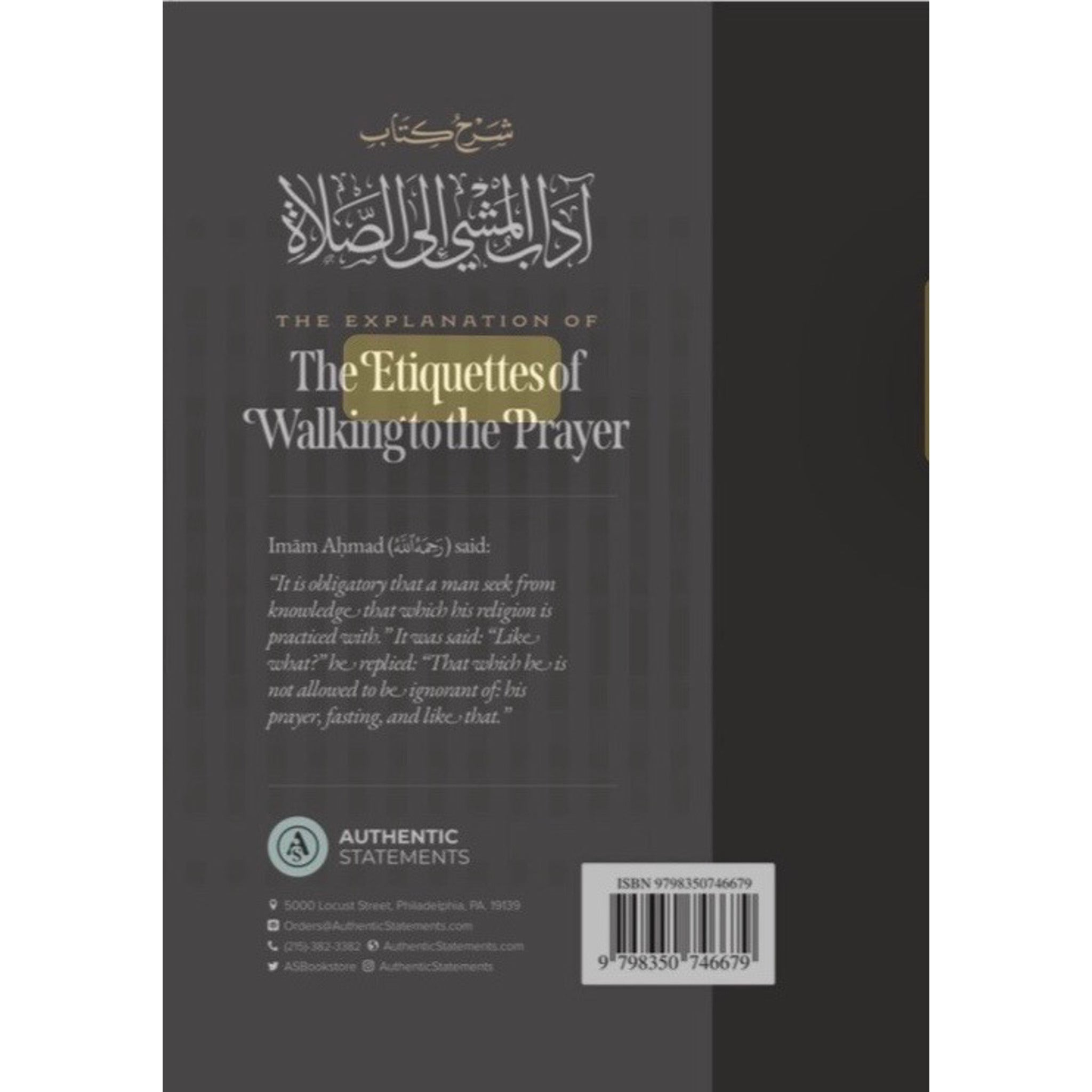 The explanation of the etiquettes of walking to the prayer Imam Ahmad said: "It is obligatory that a man seek from knowledge that which his religion is practiced with. "It was said: "Like what?" he replied: "That which he is not allowed to be ignorant of: bis prayer, fasting, and like that.