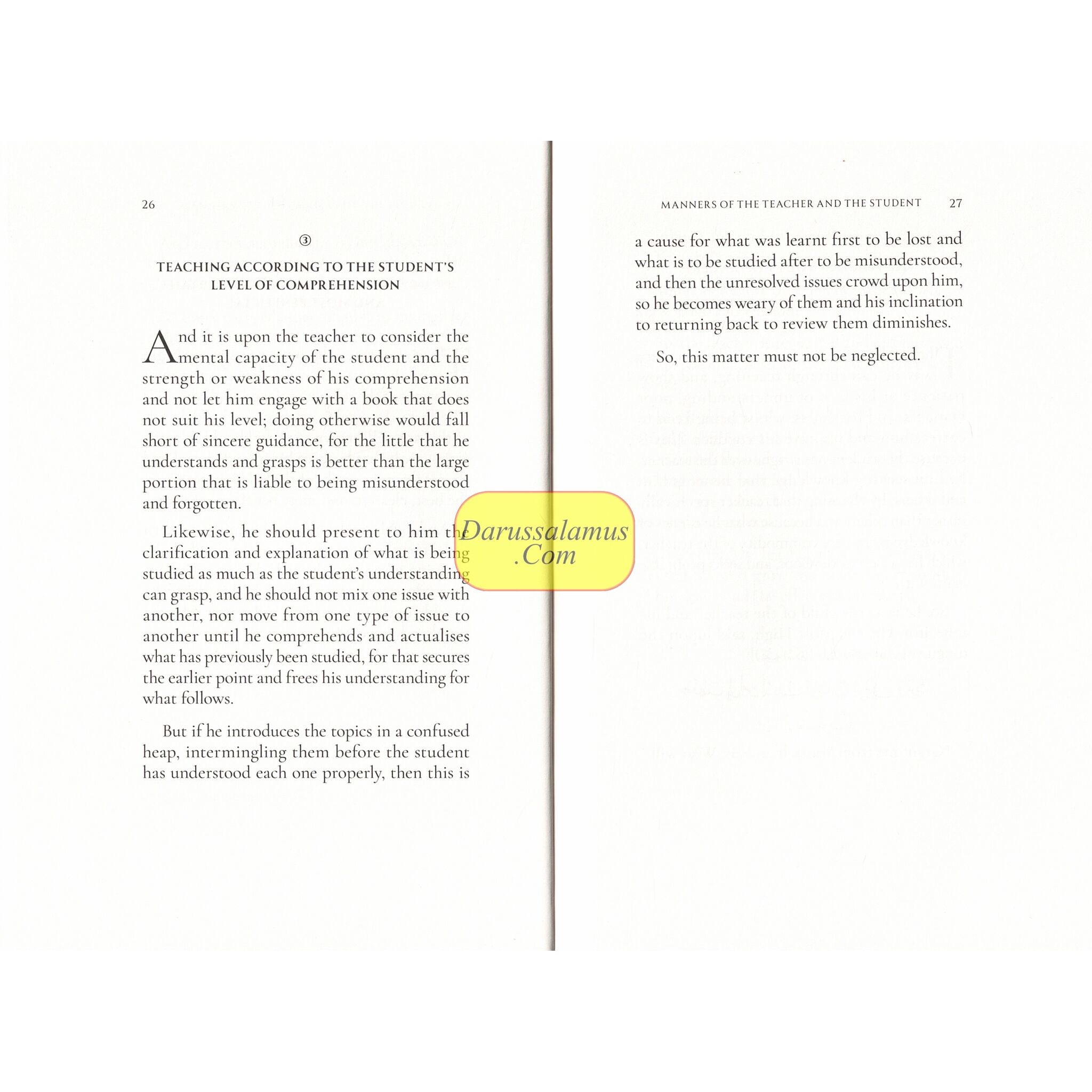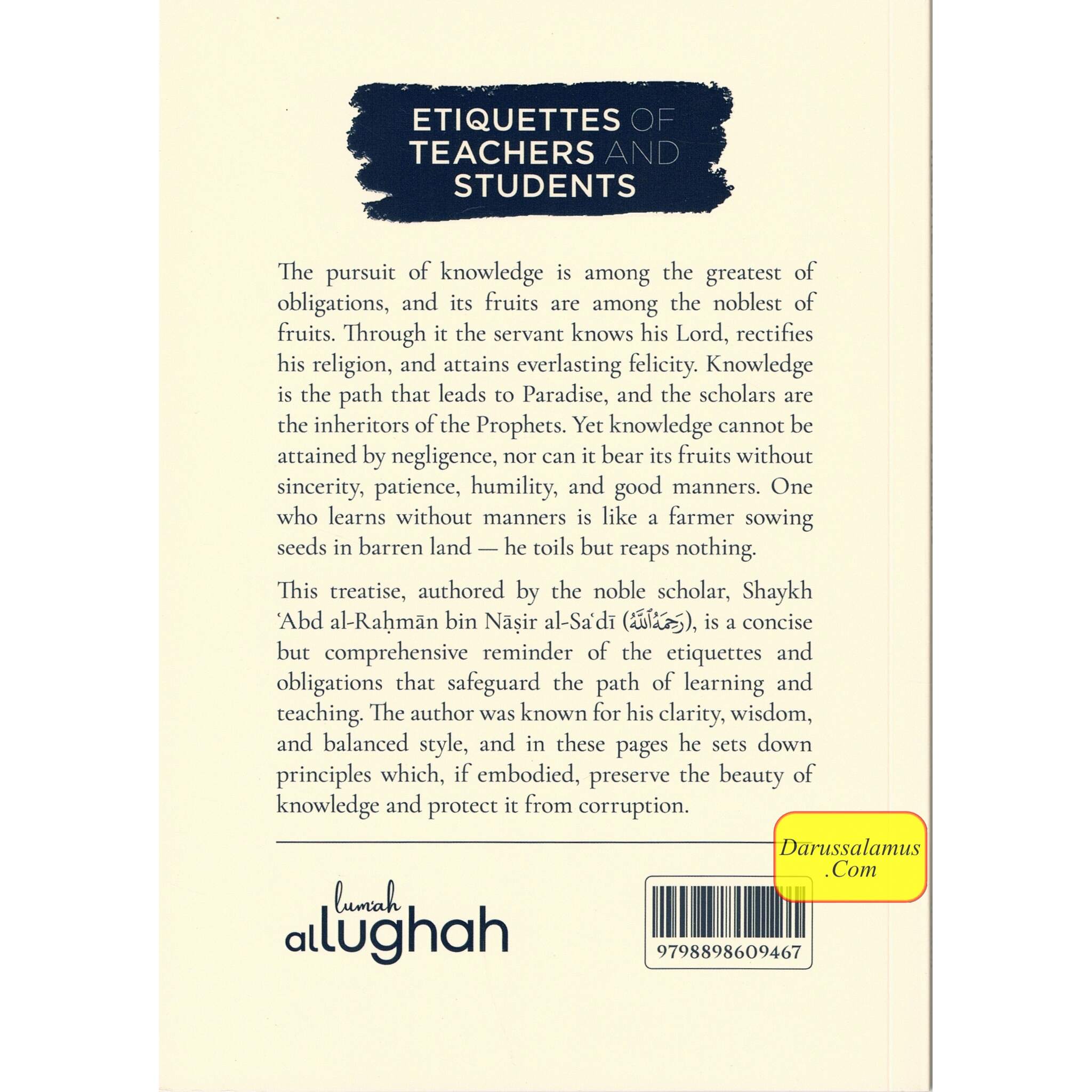 The pursuit of knowledge is among the greatest of obligations, and its fruits are among the noblest of fruits. Through it the servant knows his Lord, rectifies his religion, and attains everlasting felicity. Knowledge is the path that leads to Paradise, and the scholars are the inheritors of the Prophets. Yet knowledge cannot be attained by negligence, nor can it bear its fruits without sincerity, patience, humility, and good manners. One who learns without manners is like a farmer sowing seeds in barren land - he toils but reaps nothing. This treatise, authored by the noble scholar, Shaykh 'Abd al-Rahman bin Naşir al-Sa'di (5), is a concise but comprehensive reminder of the etiquettes and obligations that safeguard the path of learning and teaching. The author was known for his clarity, wisdom, and balanced style, and in these pages he sets down principles which, if embodied, preserve the beauty of knowledge and protect it from corruption.